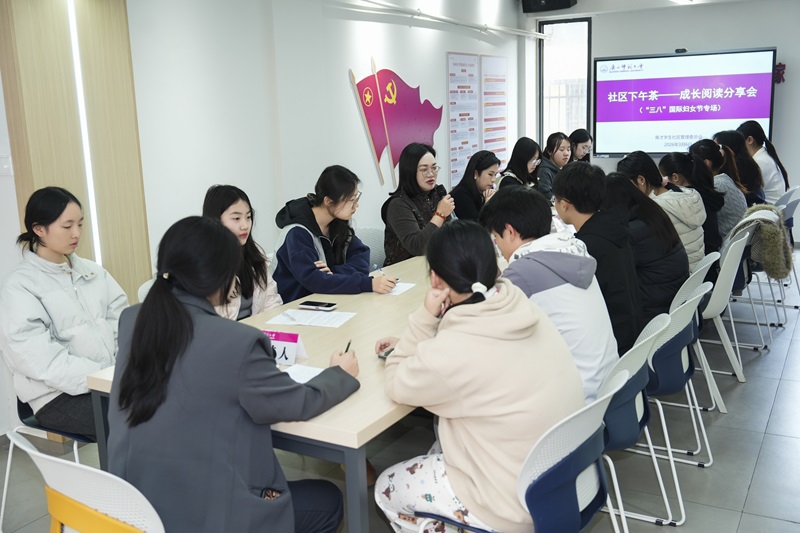 3月6日,在“三八”国际妇女节来临之际,我校 2026年第一期社区下午茶——成长阅读分享会在雁山校区、育才校区学生社区同步举行。校党委常委、副校长沈星灿出席活动,教师代表王枬、王彦、韦冬雪、刘惠、蔡慧玲、欧阳丹及各学院(部)50余名学生参加阅读分享会,学生工作部(处)主要负责人陪同。