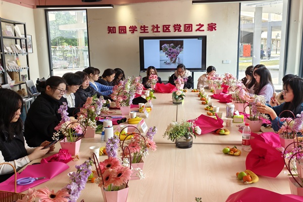 活动以文化浸润、思想交流为载体,设置女性茶话交流、主题书签漂流、春日花艺手作等环节。活动伊始,黄英姿老师、唐旭晨老师分别结合自身经历,围绕女性成长、情绪调适、职业规划与自我提升等话题展开分享。黄英姿老师讲述从中学教师到高校教育工作者的转型历程,生动诠释了“担当、韧性、好奇心”对职业发展的重要意义,勉励同学们在人生道路上勇担责任、坚韧前行,始终以开放的心态拥抱世界。唐旭晨老师围绕自我成长,强调身心健康是成长的基石,呼吁同学们要正视自身发展需求,学会健康管理情绪,勇于探索人生的可能性。在师生互动环节,同学们分享各自成长故事与心路历程,围绕学业生活、人际交往及未来发展困惑提问交流,进一步拉近师生距离,凝聚发展共识。