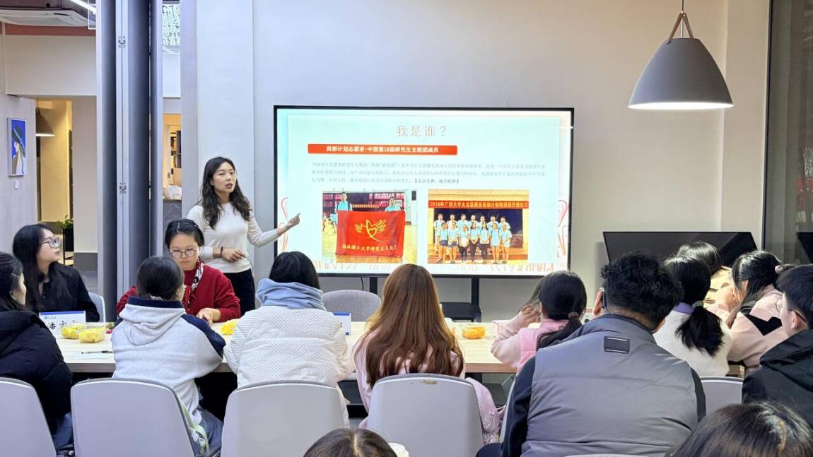 妇女节当天,学院面向不同学生群体举办了专题沙龙,邀请“全国巾帼文明岗”、广西师范大学女性发展研究所成员、学院副教授蔡慧玲老师与青年教师李晓琳博士,在三期研究生社区为女研究生成长注入思想动能。蔡慧玲老师从婚恋观切入,鼓励学生珍惜平台、锤炼自我;李晓琳老师结合“底刊现象”剖析学术困境,分享论文写作与自我定位的实用方法。