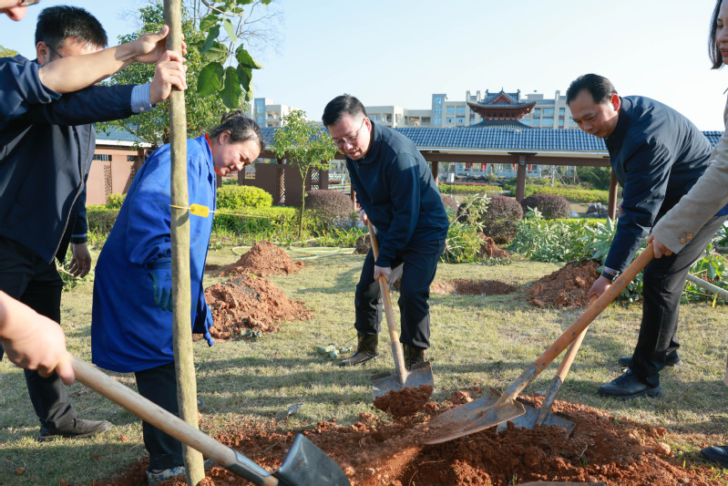 春风送暖,绿意萌动。3月12日,全国第48个植树节如期而至,我校在雁山校区雁栖湖畔开展植树活动。校党委书记贺祖斌带领全体在家校领导班子成员,与学校各民主党派、无党派人士、统战团体,台湾教师、中外师生代表及机关各党支部书记、机关各职能部门主要负责人,后勤保障处/后勤服务集团、国际合作与交流处/港澳台事务办、国际文化教育学院有关负责人等共同参与活动。