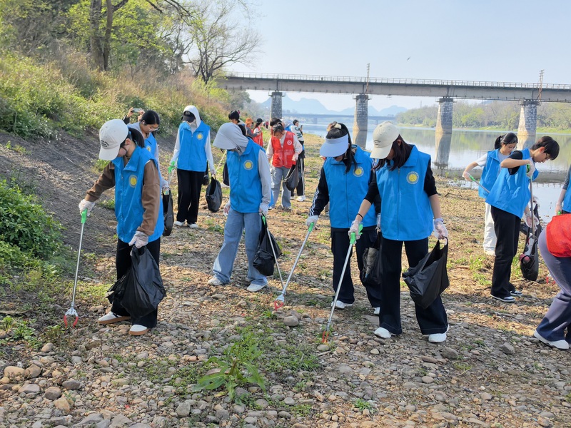 活动现场,青马班学员们身着志愿服装,手持垃圾夹、垃圾袋等工具,沿漓江沿岸开展环境卫生清理工作。大家分工协作、认真细致,重点清理河岸草丛、石缝中的塑料袋、纸屑、烟头及各类生活垃圾,认真清理各个卫生死角,用双手为漓江“净颜”,改善沿岸环境面貌。清理过程中,学员们还主动向周边市民、游客宣传漓江生态保护知识,倡导文明出行、不乱扔垃圾、爱护自然环境,以实际行动传递环保理念,带动更多人参与到漓江保护中来。
