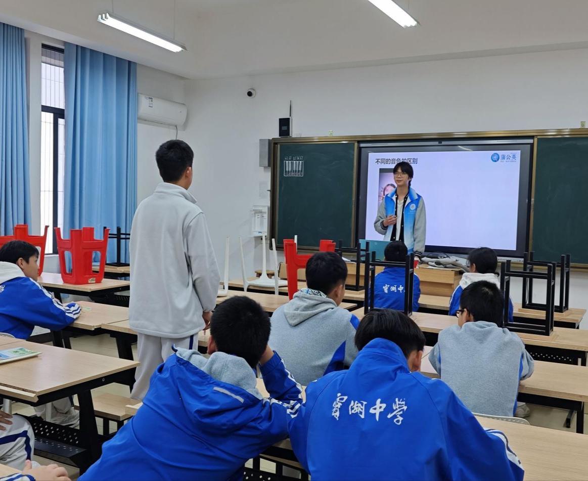 3月15日,广西师范大学物理科学与技术学院蒲公英科技・教育传播团队在宝湖中学科技楼 401、402 教室,开展继寒假先导课后,面向初一、初二学生推出的共 12 次系列课程的第一课“玩转声音”。