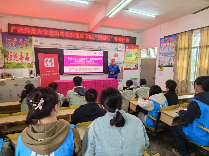 此次富川麦岭中学之行,是广西师范大学政治与公共管理学院社会学与社会工作系教工党支部落实“强国行”专项行动的具体实践,更是学院深化“党建+专业+育人”特色模式、推动校地资源双向流动、助力乡村教育振兴的重要举措。长期以来,学院始终以高质量党建引领专业发展与人才培养,坚持把专业优势转化为服务地方发展的实际效能。此次活动通过“微课+座谈+辅导”的形式,既为基层研支团提供了精准的专业指导,拓宽了支教工作的思路与视野,也进一步拓展了高校实践育人的场景与路径,彰显了高校基层党支部服务地方教育发展、助力乡村全面振兴的责任与担当。