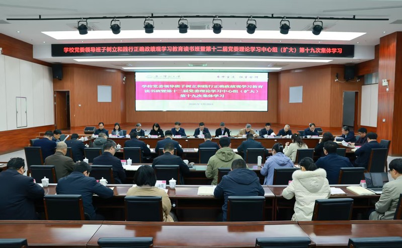 3月20日,学校党委领导班子树立和践行正确政绩观学习教育读书班暨第十二届党委理论学习中心组(扩大)第十九次集体学习在育才校区举行。校党委书记贺祖斌主持会议并作讲话,校党委副书记、校长孙杰远领学习近平总书记在2026年全国两会期间的重要讲话精神。