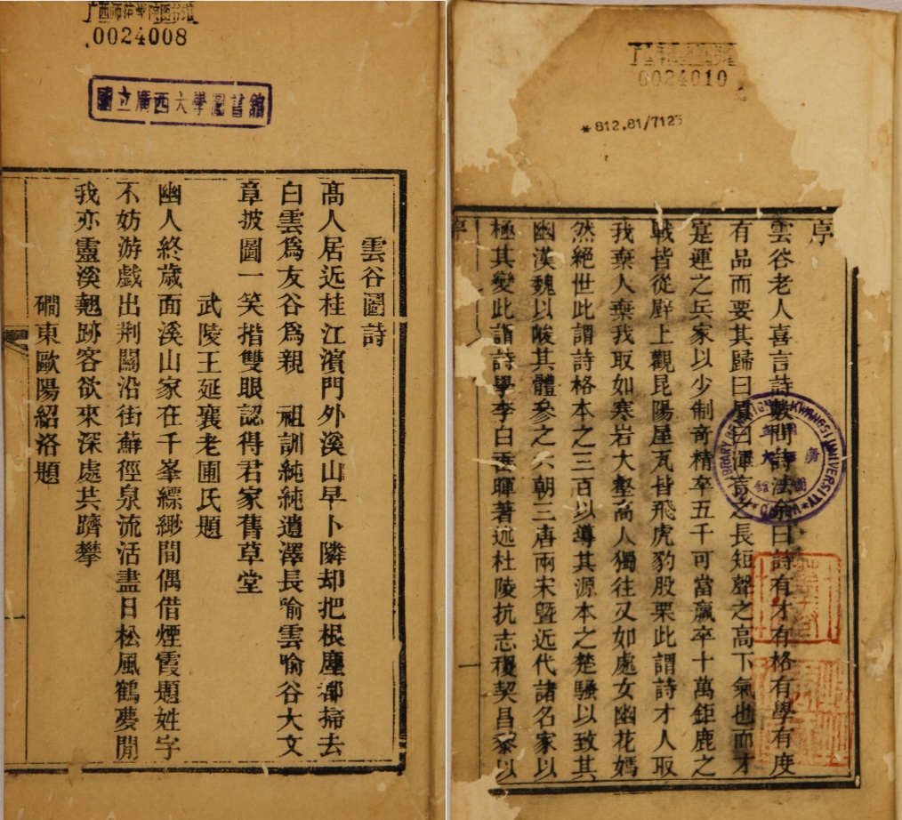 近期,广西壮族自治区文化和旅游厅公布了第四批《广西壮族自治区珍贵古籍名录》。经组织申报、专家评审、征求意见等严谨流程,全区共100部古籍入选,其中汉文古籍83部,古壮字古籍15部、满文古籍2部。我校图书馆所藏5部古籍成功入选该名录,分别是明刻本《吕氏春秋二十六卷》、清刻本《中州名贤文表三十卷》和清刻本《云谷琐录一卷云谷图诗一卷桑榆唫草一卷》等3部汉文古籍,以及清刻本《音汉清文鑑》和清抄本《虎口余生》2部满族文字古籍。此次入选是我校馆藏古籍再次上榜,至此,我校共有10部古籍入选《国家珍贵古籍名录》,103部古籍入选《广西壮族自治区珍贵古籍名录》。