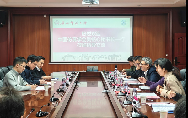 宋树祥代表学校对吴铭心一行的到来表示热烈欢迎,并介绍了广西师范大学的办学概况与近年来取得的发展成就。他指出,仿真技术作为支撑科技创新的重要手段,与电子信息、集成电路等学科有着广泛的结合空间。学校高度重视相关领域的交叉融合发展,希望以此次调研为契机,与中国仿真学会在学科建设、人才培养、科研合作与成果转化等方面建立长效合作机制,共同服务国家战略需求。