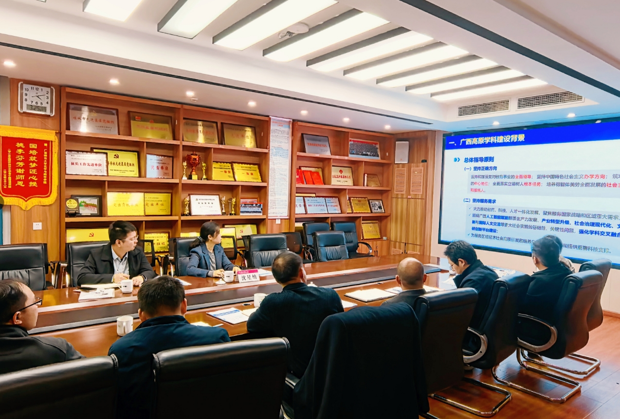 3月25日下午,校党委常委、副校长沈星灿赴化学与药学学院,调研广西高原学科(化学)及药用资源化学与药物分子工程教育部重点实验室建设工作。学院领导班子、重点实验室负责人及学科带头人参加调研座谈会。