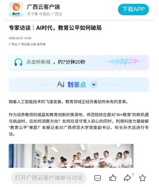 - 【广西日报】关注报道我校以“AI+教育”探路教育公平新实践 02-02